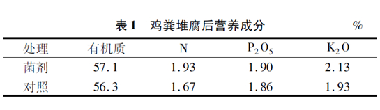添加微元堆肥發酵菌劑進行雞糞堆肥發酵后,有機質、全氮、全磷、全鉀含量均高于對照(表1),說明雞糞堆肥接種微生物菌劑有利于堆肥質量提高。