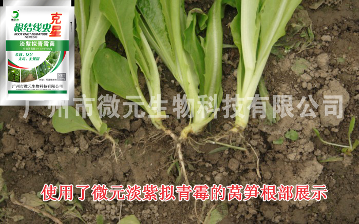 廣州市微元生物科技有限公司利用自家研發(fā)生產(chǎn)的新型微生物菌劑淡紫擬青霉菌,在公司的實(shí)驗(yàn)基地里選用萵筍做實(shí)驗(yàn)(地基位置廣州市天河區(qū)凌塘村),使用公司研發(fā)生產(chǎn)的淡紫擬青霉菌在蔬菜種植防治萵筍根結(jié)線蟲(chóng)試驗(yàn)又一次圓滿(mǎn)成功。微元淡紫擬青霉菌種是新型純微生物活孢子制劑,具有高效、廣譜、長(zhǎng)效、安全、無(wú)毒、無(wú)污染、無(wú)殘留等特點(diǎn),可明顯刺激作物生長(zhǎng)。