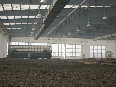 雞糞槽式好氧發(fā)酵:這是目前處理雞糞最有效的方法,也適合雞糞有機肥商品化生產(chǎn),有利于標(biāo)準(zhǔn)化生產(chǎn)。它利用生物學(xué)特性結(jié)合機械化技術(shù),利用自然微生物堆肥快速腐熟劑或接種微生物堆肥發(fā)酵菌種將雞糞完全腐熟并將有機物轉(zhuǎn)化為有機質(zhì)、二氧化碳與水,這種方法發(fā)酵時間短,一般15 d左右就能使雞糞完全發(fā)酵腐熟,而且易實現(xiàn)工廠化規(guī)模生產(chǎn),不受天氣季節(jié)影響,對環(huán)境造成的污染小,有利于雞糞有機肥的商品化生產(chǎn)。根據(jù)設(shè)備不同,發(fā)酵槽的寬度一般為6 m,深度一般為1.5 m,長度在50~100 m,可根據(jù)實際情況設(shè)計。