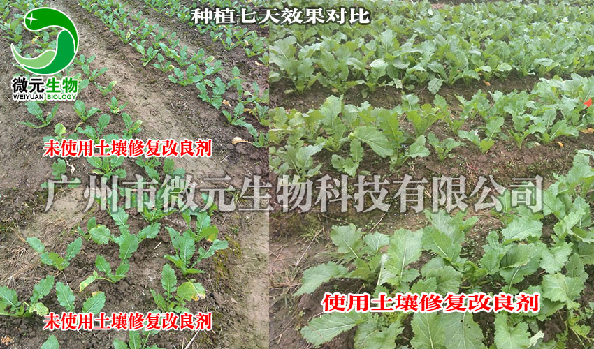 采收期間王先生特意去臨近農(nóng)戶同一品種的頭菜進(jìn)行了對(duì)比。高度和頭部基本相差不大,莖部和葉子卻要比沒有用微元土壤修復(fù)改良劑和微元復(fù)合木霉菌的要大的多,對(duì)于只使用了兩次化肥就能有此收獲王先生對(duì)這兩種產(chǎn)品還是給予相當(dāng)高的評(píng)價(jià)。