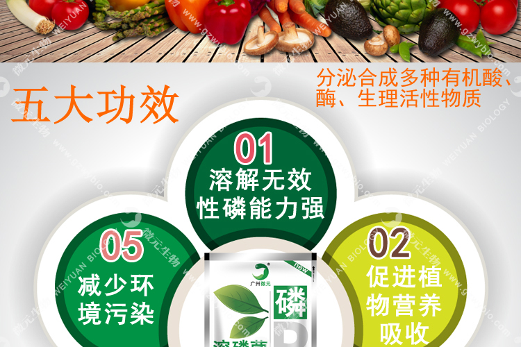 微元-溶磷菌具有繁殖快速、生命力強(qiáng)、安全無(wú)毒等特點(diǎn);分泌合成多種有機(jī)酸、酶、生理活性物質(zhì)等。溶磷菌可分泌有機(jī)酸類等物質(zhì)溶解土壤中作物不易吸收的鈣磷、鐵磷、鋁磷等化合物,促進(jìn)土壤中無(wú)效磷的溶解及利用。