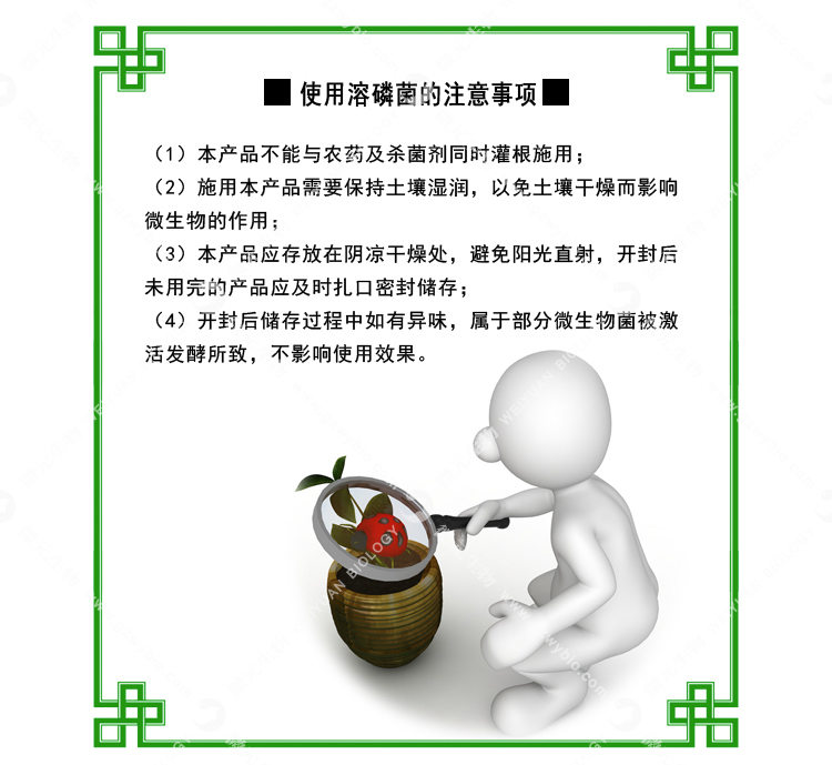 (2)施用本產(chǎn)品需要保持土壤濕潤(rùn),以免土壤干燥而影響微生物的作用;