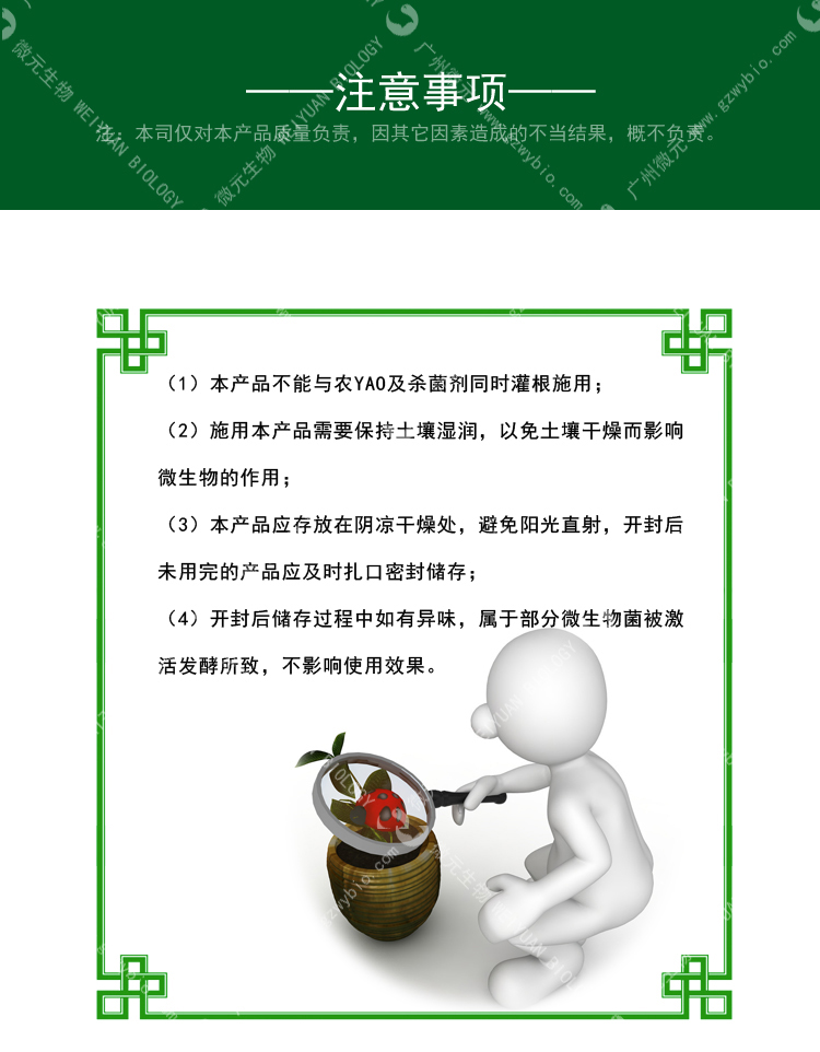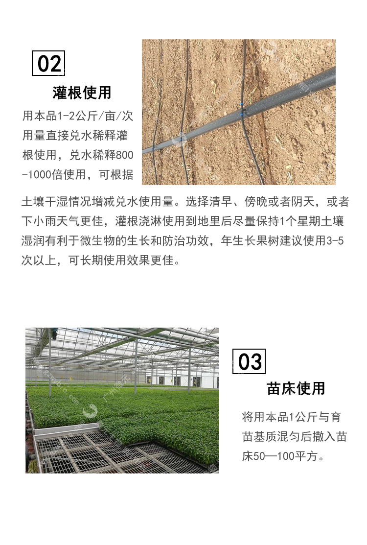 (2)施用本產品需要保持土壤濕潤,以免土壤干燥而影響微生物的作用;