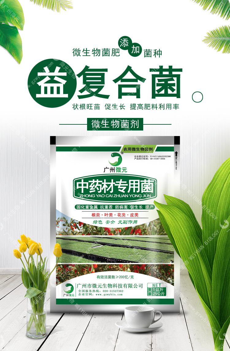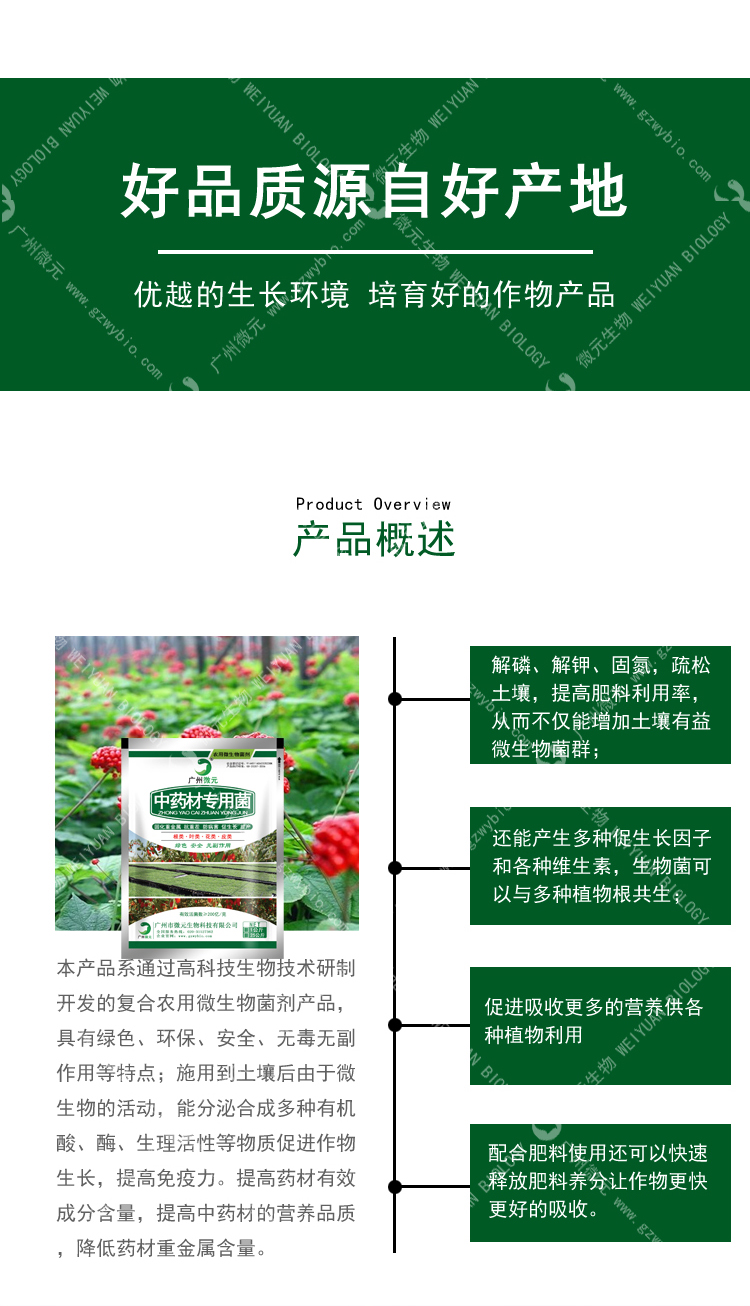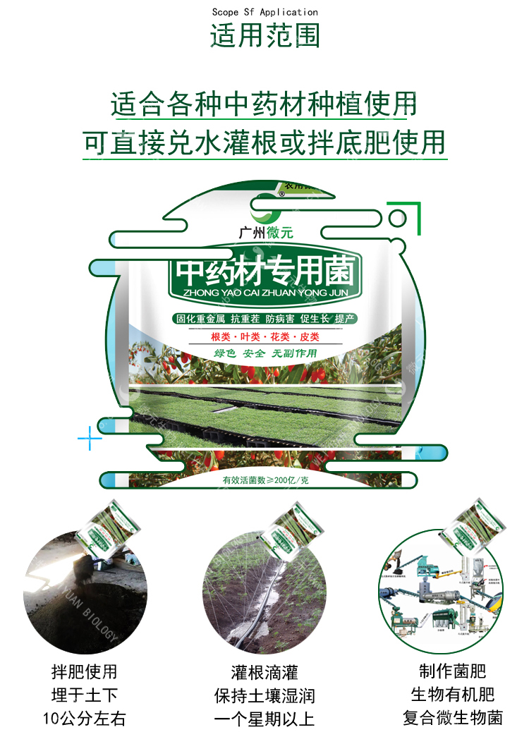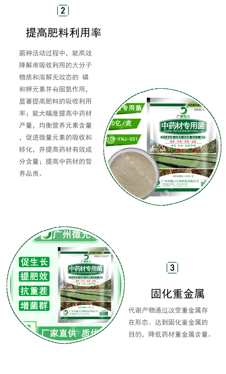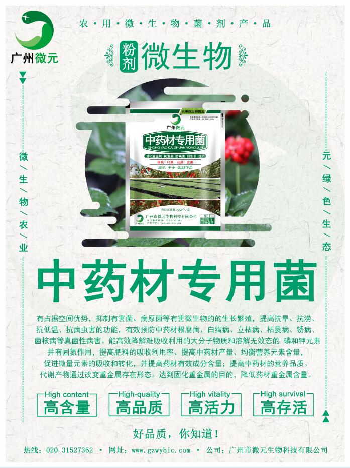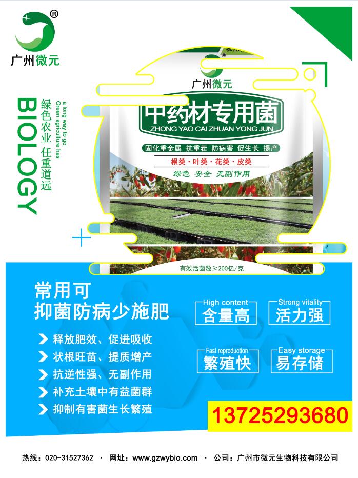磷和鉀元素并有固氮作用,顯著提高肥料的吸收利用率;能大幅度提高中藥材產(chǎn)量,均衡營(yíng)養(yǎng)元素含量,促進(jìn)微量元素的吸收和轉(zhuǎn)化,并提高藥材有效成分含量;提高中藥材的營(yíng)養(yǎng)品質(zhì)。