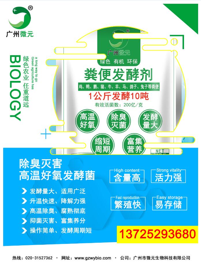 我公司糞便發(fā)酵劑是通過高新生物工程技術研發(fā)、生產(chǎn)而成,具有繁殖快速、生命力強、安全無毒等