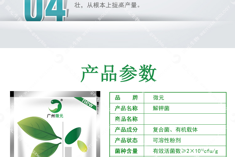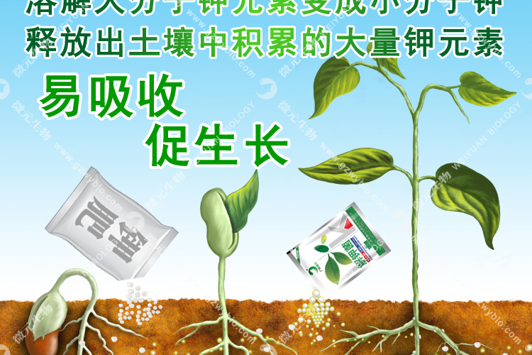 2.促生長(zhǎng)抗病害:在土壤中繁殖后,分泌植物生長(zhǎng)刺激素及多種酶,以增強(qiáng)作物對(duì)一些病害的抵抗力;也抑制其他病原菌的生長(zhǎng),菌體內(nèi)的鉀在菌體死亡后,游離出來(lái),可被植物循環(huán)吸收利用。