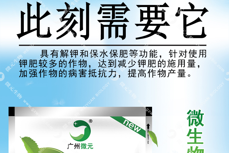 我司生產(chǎn)的解鉀菌具有解鉀和保水保肥等功能,針對(duì)使用鉀肥較多的作物,達(dá)到減少鉀肥的施用量,加強(qiáng)作物的病害抵抗力,提高作物產(chǎn)量。