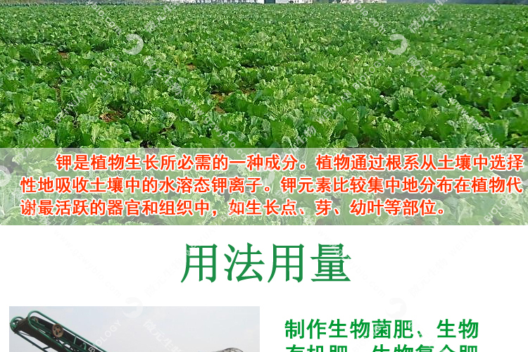 大田作物:每公斤兌水稀釋300-500倍灌根使用;或者與有機(jī)肥、化肥拌合均勻后進(jìn)行溝施,適合在幼苗期、生長(zhǎng)中期施用。