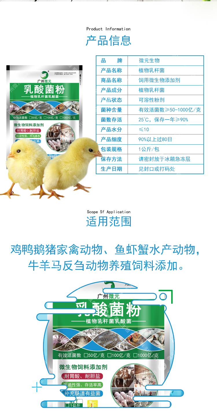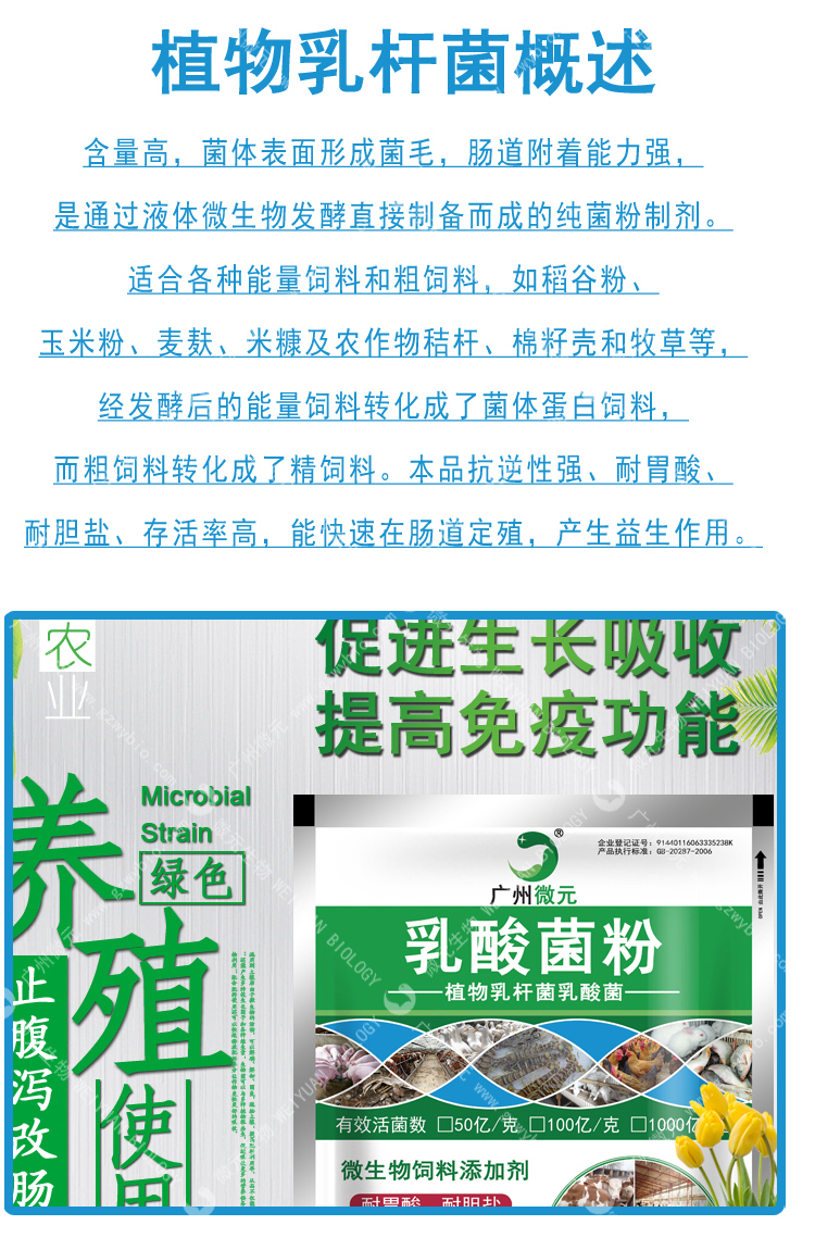 我公司植物乳桿菌是在現(xiàn)代生物技術(shù)基礎(chǔ)上,根據(jù)國(guó)內(nèi)養(yǎng)殖業(yè)實(shí)際情況研制開發(fā)的新型微生物飼料添加劑產(chǎn)品。該菌株是由特殊工藝選育的功能性菌株,經(jīng)液體深層發(fā)酵、多層包衣、冷凍干燥精制而成的綠色飼料添加劑產(chǎn)品。