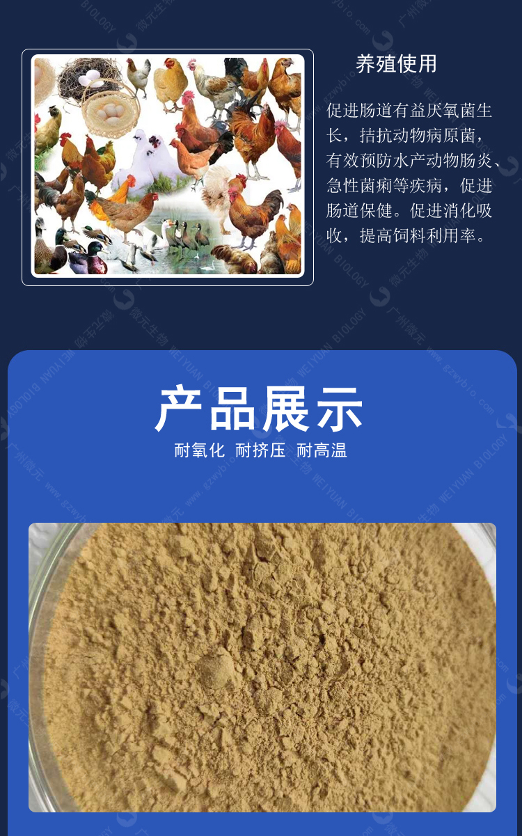 2×1010cfu/g:每噸飼料建議添加量為300-500g。高活菌數作為原粉使用,按使用途徑逐級稀釋處理。
