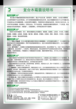 備注:預(yù)防真菌性病害建議用量:300-500g/畝,治療用量:800-1000g/畝。