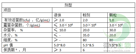 a 復合菌劑,每一種有效菌的數量不得少于0.01 億/g(mL);以單一的膠質芽胞桿菌(Bacillus mucilaginosus)制