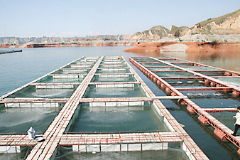 水產養殖魚蝦池塘水質處理技術,黃泥色主要由于大量顆粒懸浮,造成透明度降低,藻類難以繁殖所致。潑石灰,或含有綠化鋁藥物,次日潑灑肥水素即可。水面出現泡沫和灰土色絲狀物質,是水體過肥之故,使用芽孢桿菌即可。養殖中后期水體易產生藍藻,趁被集中吹至下風角落時刻,對藍藻面潑灑硫酸銅或者紅霉素,此法不能一次性除盡,宜多次重復才能減少藍藻。另外,還可以通過換去上層水的辦法降低藍藻數量。其它不良藻相的水質,宜使用二氧化氯等較強的消毒藥物處理,一周后使用單胞藻種培育優良藻相,以穩定水色。
