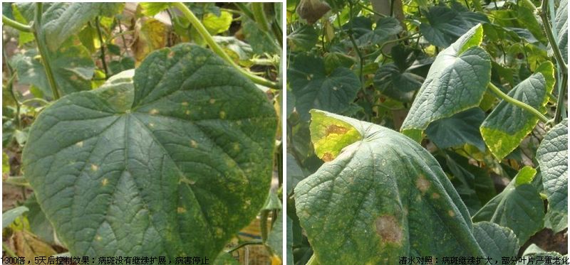 葉片上病斑近圓形,直徑4—18毫米,濕度大時呈淡灰色或紅褐色,略呈濕潤狀;濕度小時病斑常干枯,橙紅褐色,甚至造成葉片干枯,主蔓和葉柄上病斑呈橢圓或長圓形、黃褐色、稍凹陷。嚴重時病斑連接,包圍主蔓,致使植株一部或全部枯死。瓜條上病斑近圓形,初呈淡綠色,后為黃褐色或暗褐色,病部稍凹陷,表面有粉紅色粘稠物,后期常開裂,葉柄和瓜條上有時出現琥珀色流膠。